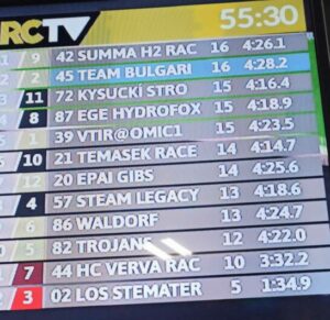 12:26 Uhr: Zeitstrafe wegen ruppiger Fahrweise: Das hat uns wieder 4 Runden gekostet. Der Vorsprung zu den ASE Racers wird kleiner.