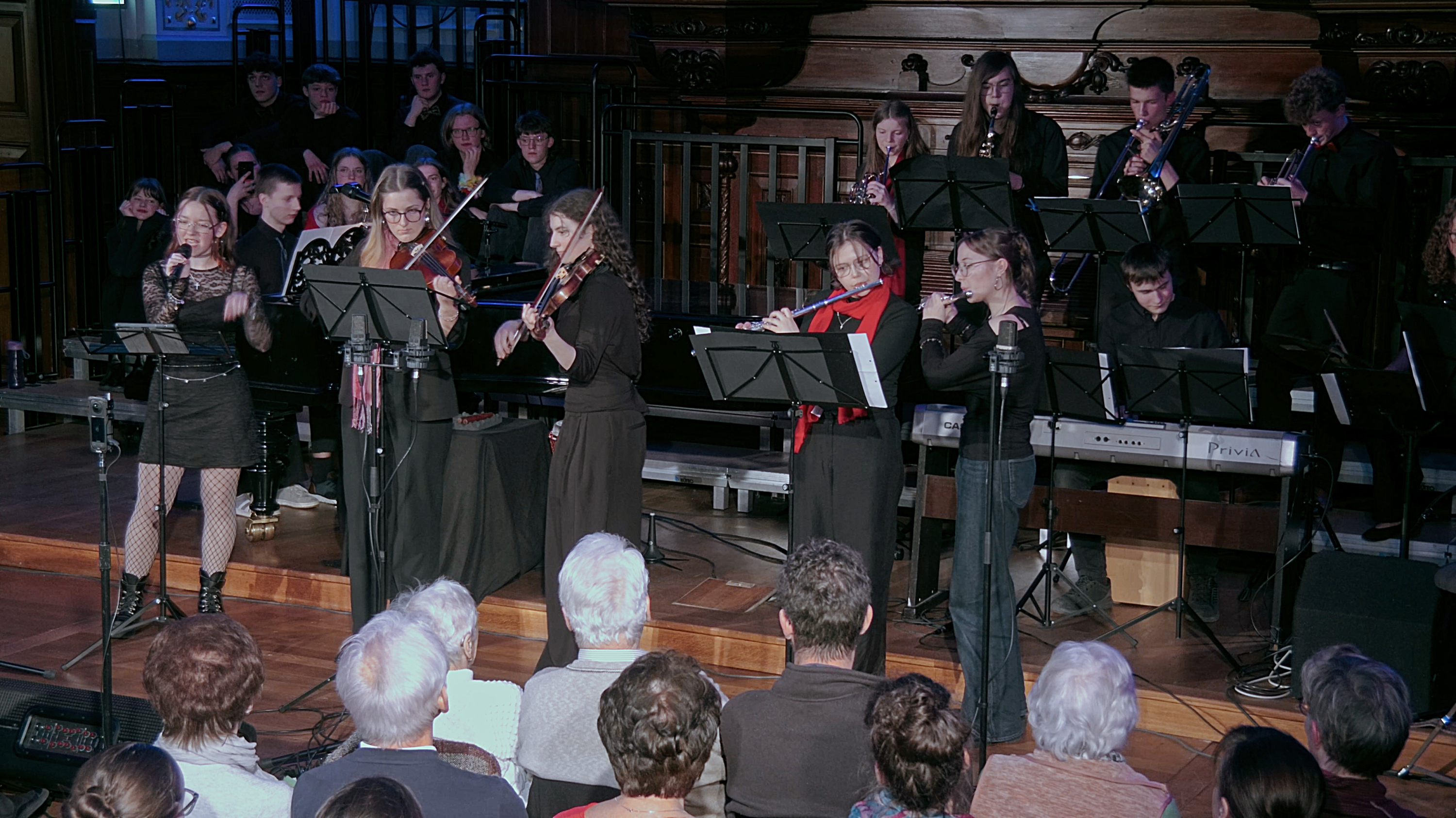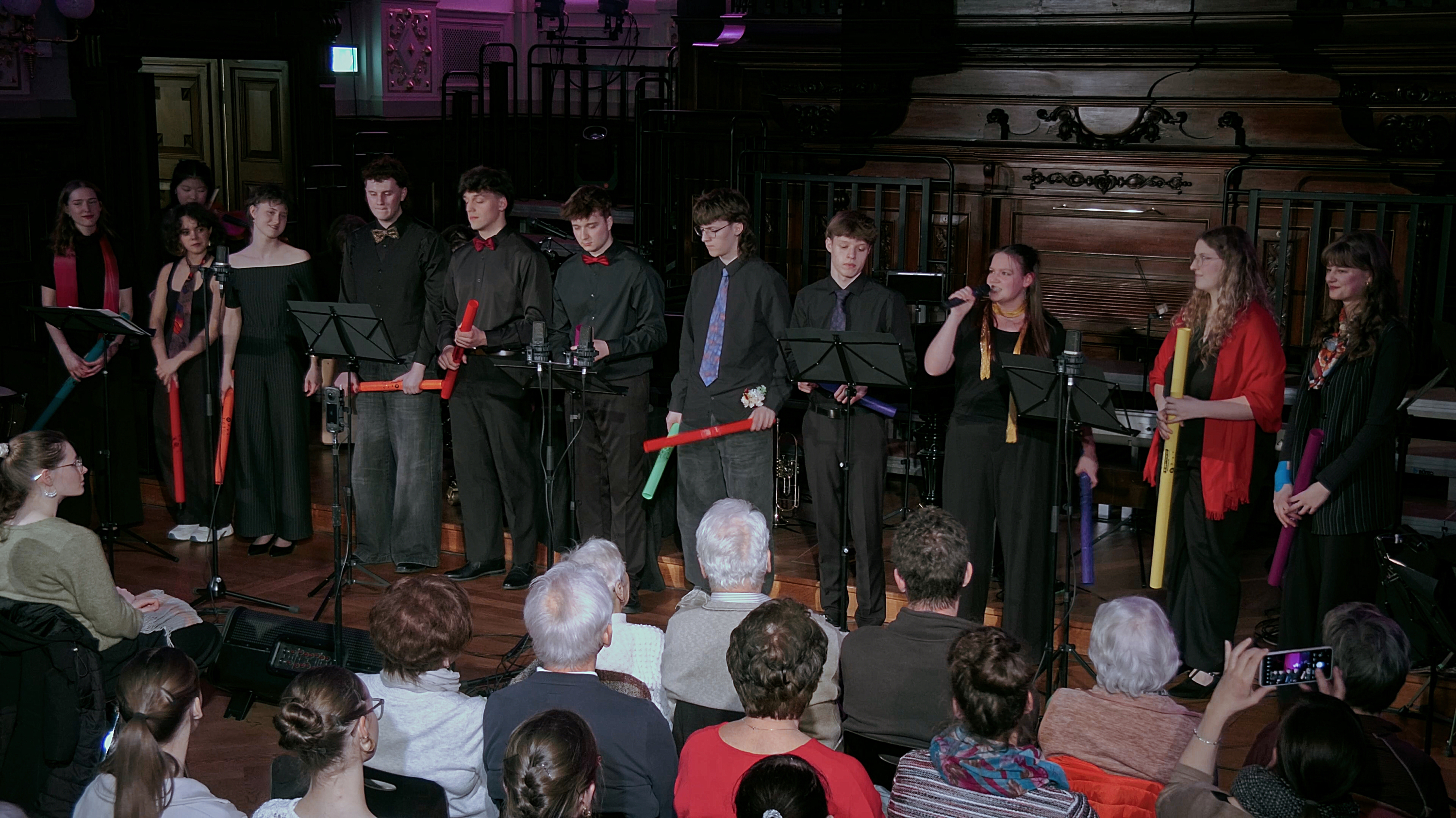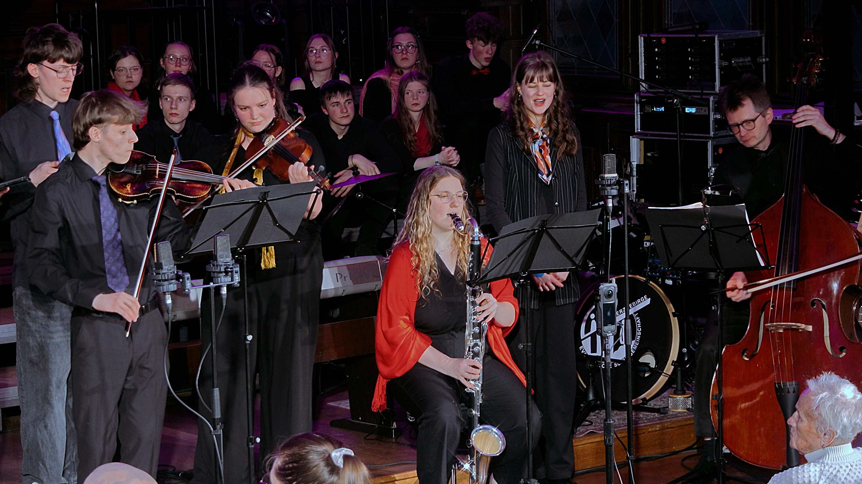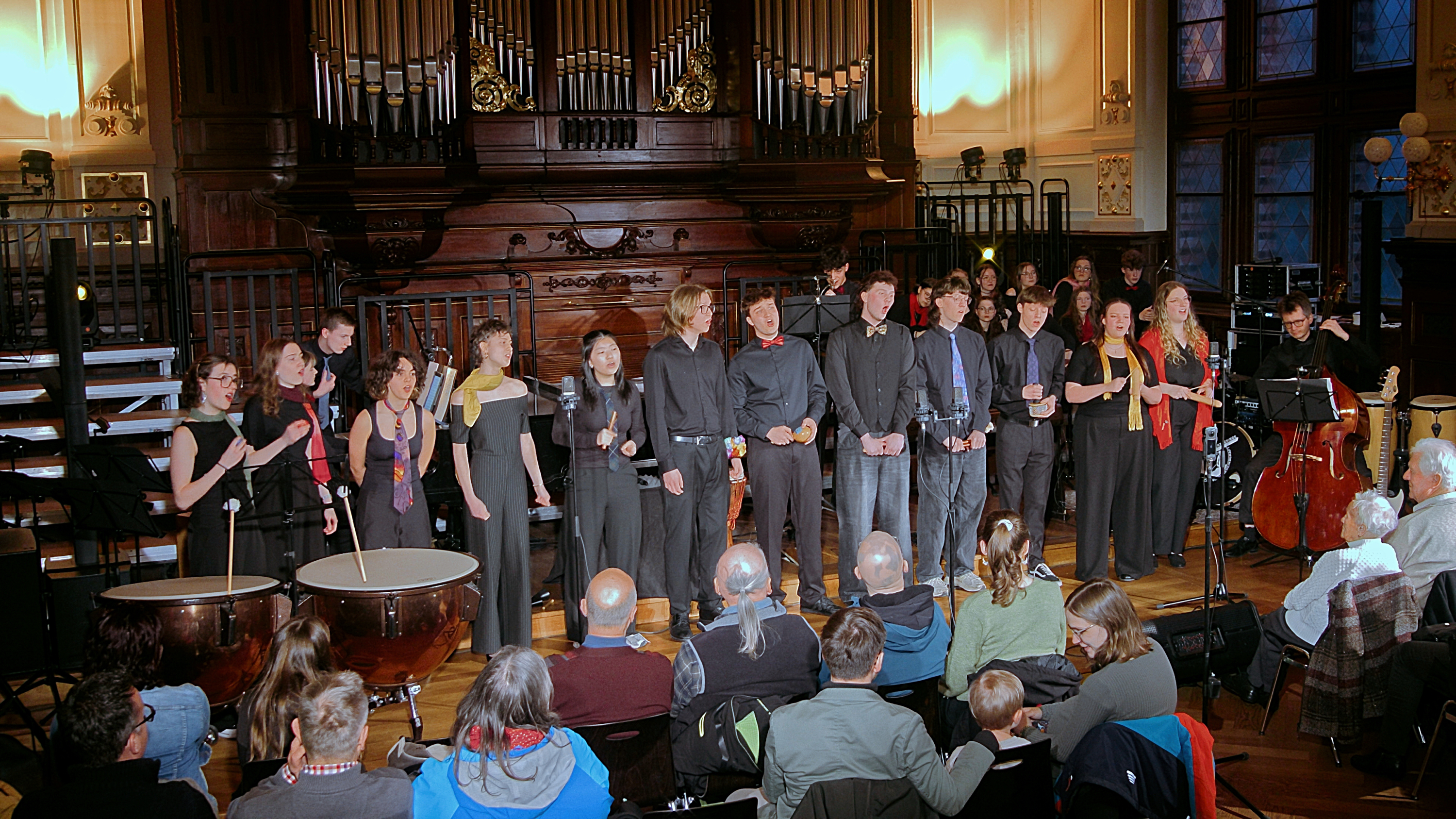 Am 30.3. war es endlich wieder soweit: die Musik-Leistungskurse gaben ihr Jahrgangskonzert. Dabei erklange hochkarätige Ensemblemusik von Dixieand- und Latin-Jazz bis Electrop und Chorgesang vom Frühbarock bis zu zeitgenössischer a-capella-Musik. Ausschnitte aus den solistischen Abitur-Programmen waren zu hören und natürlich gibts auch Experimentelles auf die Ohren:-) Freunde anspruchsvoll und begeistert musizierter Musik kamen also – wie in jedem Jahr – voll auf ihre Kosten!