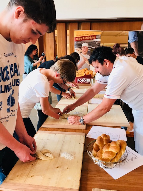 Bei den „Berufen im Test“ begleiteten die Unternehmensvertreter die Schüler dabei, eine für den Beruf typische Tätigkeit zu praktizieren. So wurde unter anderem bei der Bäckerei Roscher ein Hefezopf gefertigt, bei der Firma Turck aus Beierfeld elektronische Bauteile in Platinen eingelötet und beim Friseurstudio New Line einfache Frisur-Kreationen ausprobiert.