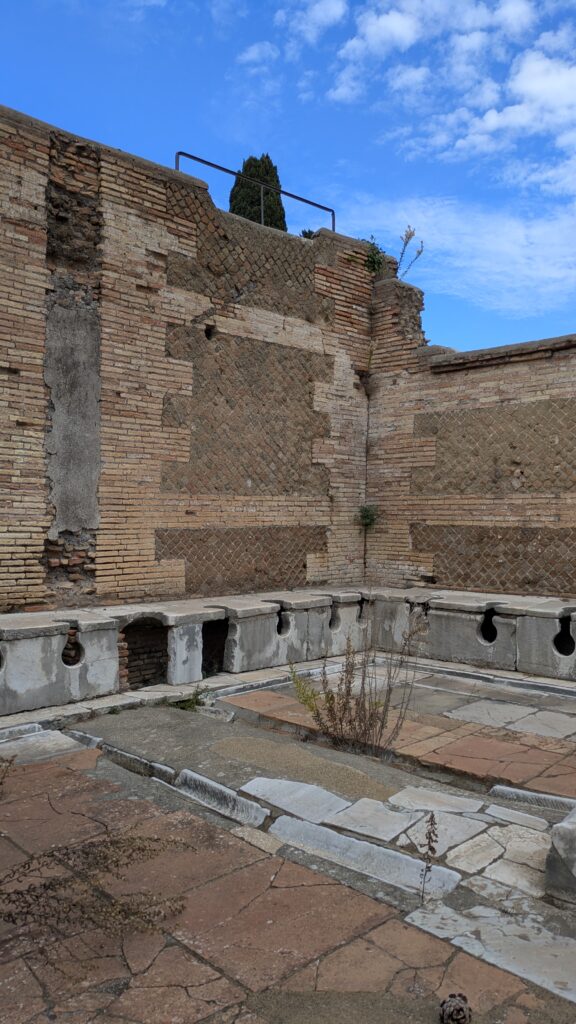 Am Mittwoch widmeten wir uns vor allem dem antiken Rom. So fuhren wir in der Früh mit der Metromare in die antike Hafenstadt Ostia. Dort wurden wir durch jahrtausendealte Straßen geführt, konnten die gut erhaltenen Mosaike bewundern und uns auch die Latrinen anschauen. Und es stimmt: Pecunia non olet!