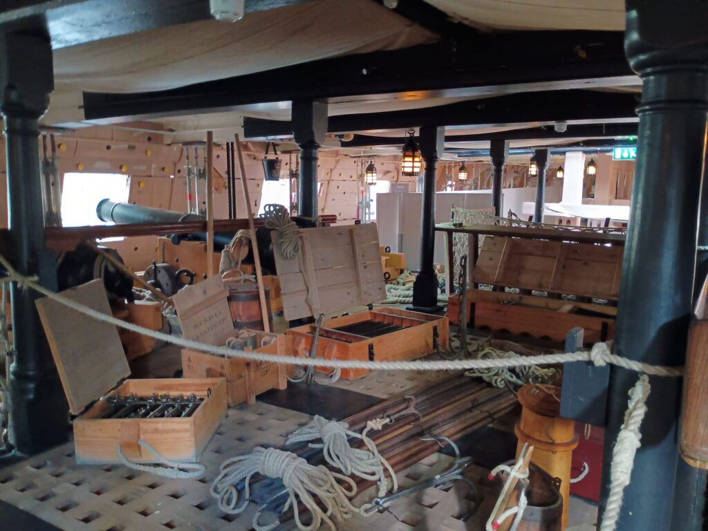 Im Anschluss fuhren wir weiter nach Portsmouth, wo wir das in Renovierung befindliche Schiff Lord Nelsons, die HMS Victory, mit der er 1805 die spanische Armada besiegte und dabei leider selbst zu Tode kam, enterten. Das berühmte Whiskeyfass, in dem seine sterblichen Überreste zurück in den Heimathafen transportiert wurde, war leider nicht ausgestellt.