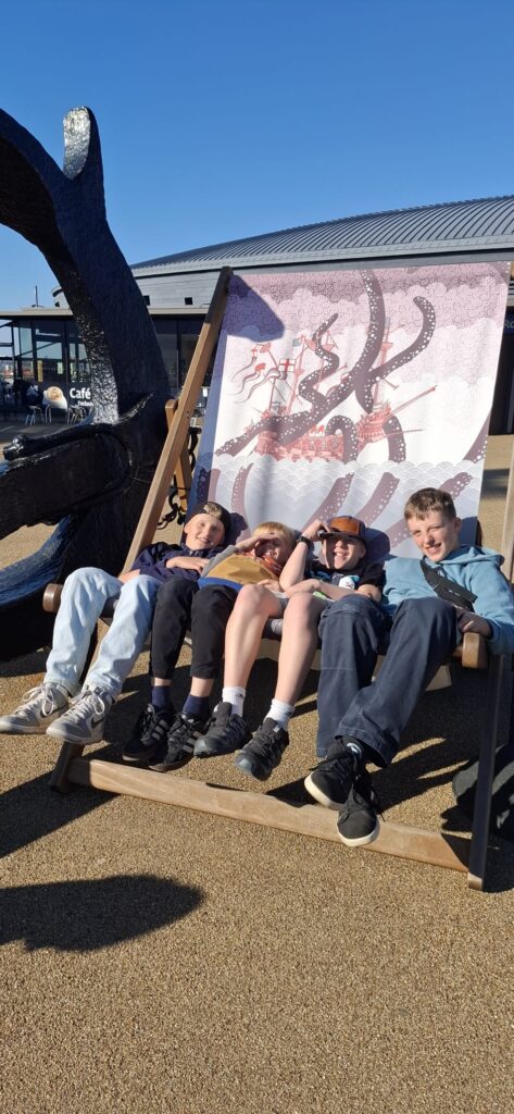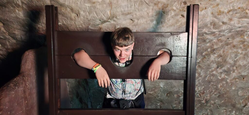 Heute ging es in die pittoreske Küstenstadt Hastings. Nach auspowernden Spieleinlagen und intensivem Muschelsuchen am Strand erklommen wir den Castle Hill, um Hairy Jack einen Besuch in seinen legendären Schmugglerhöhlen abzustatten. Wir erfuhren, warum die Bewohner mit dem Schmuggeln von Gin und Tee begannen – Kriege müssen halt finanziert werden -, wie sie ihre „Geschäfte“ ausführten – sehr erfinderisch und brutal – und wie die Regierung versuchte, diese zu unterbinden – eher mit mittelmäßigem Erfolg.