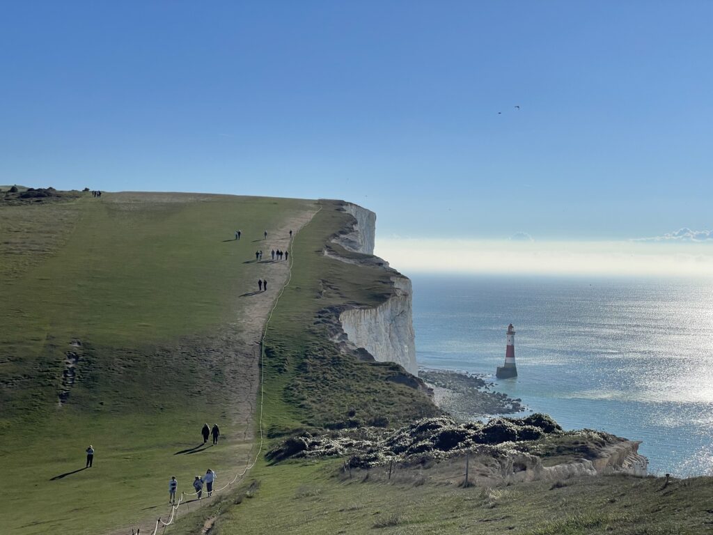 Kilometer auf den Kreidefelsen zum Beachy Head-Leuchtturm, die perfekte Kulisse für