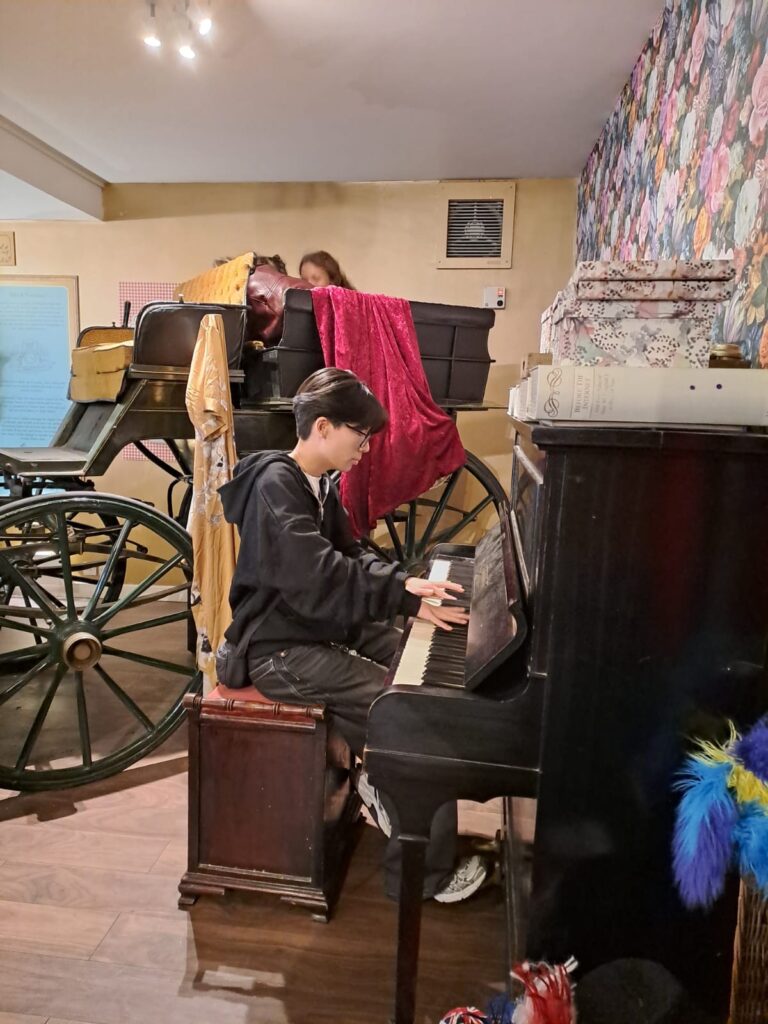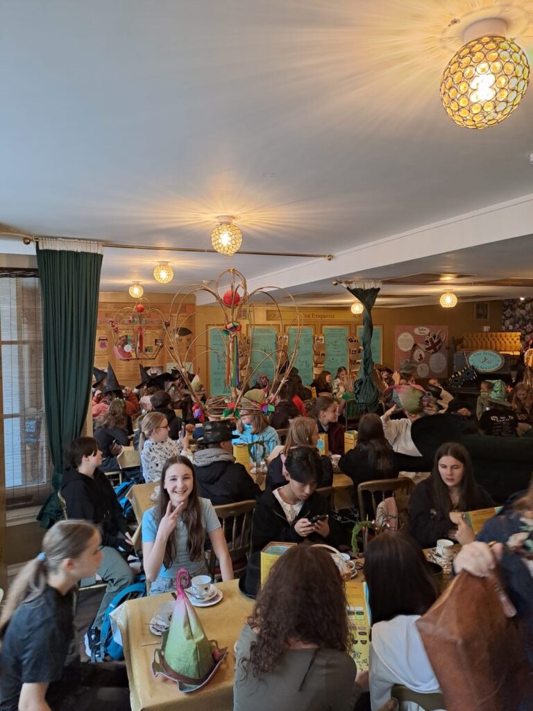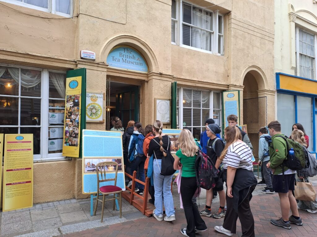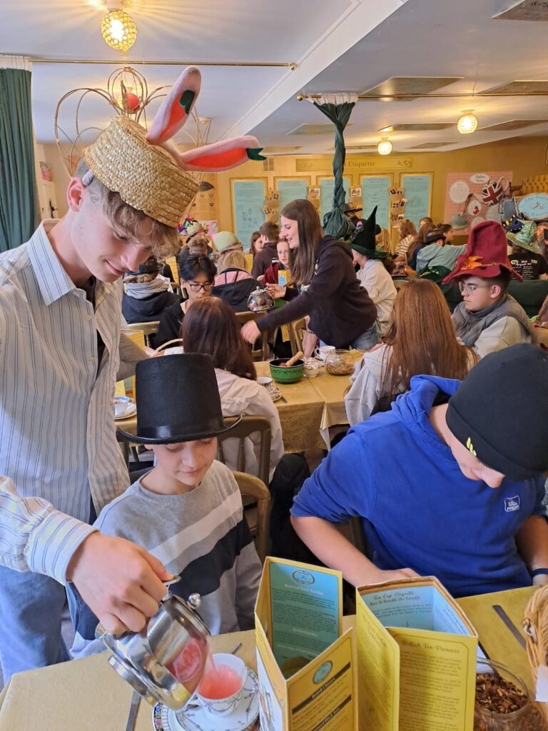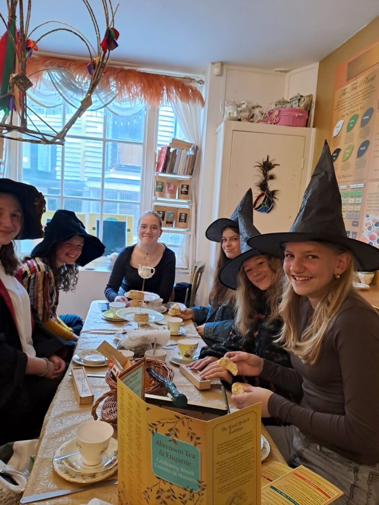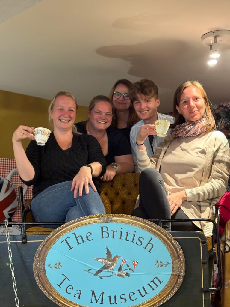 Nach einer ausgedehnten Mittagspause lernten wir mithilfe von ausgefallenen Hüten, floralen Sammeltassen und fancy Showeinlagen einen typisch britische Tradition kennen, den Afternoon Tea. Die Betreiberinnen des kleinen Museums gaben uns eine lesson in Sachen Tee-Knigge. Wir wissen nun, wie man graziös eine Teetasse hält, Scones isst und dabei möglichst aufrecht sitzt. Und dabei hatten wir trotz der strengen Etikette so viel Spaß, dass wir spontane Tanz-, Klavier- (von Erika und Lucas, lieben Dank) und Gesangseinlagen auf das Parkett – naja, eher Linoleum – legten. Mit diesem Schwung ausgestattet verging der Heimweg wie im Flug.