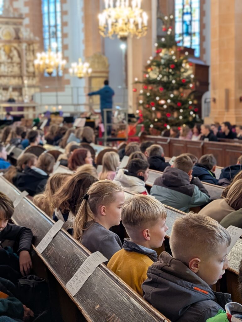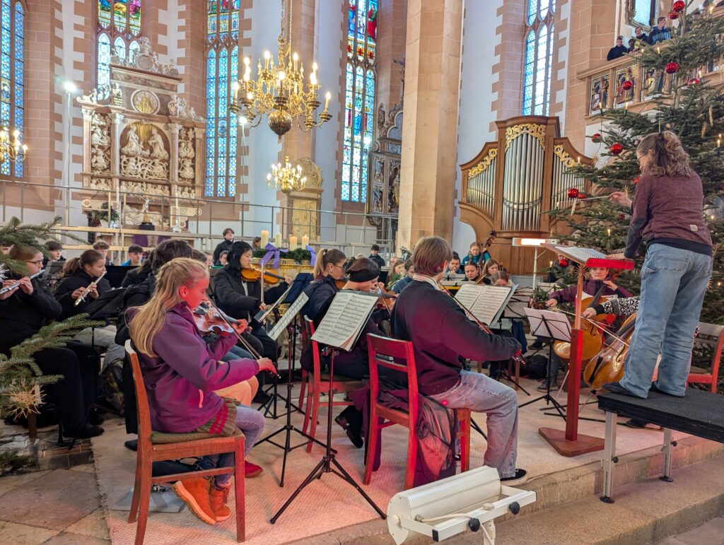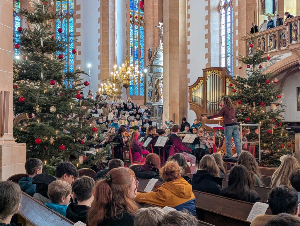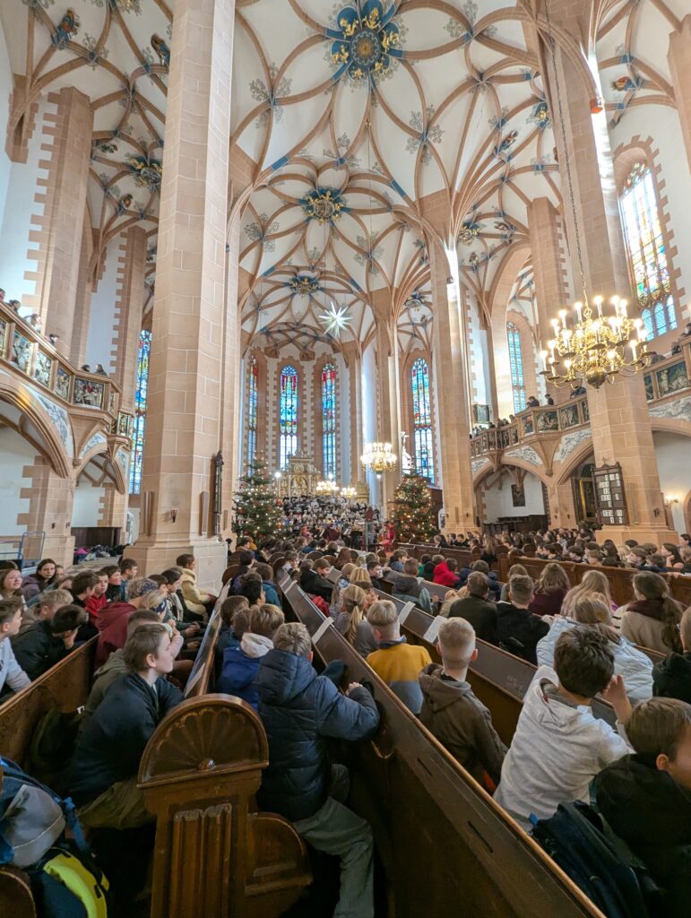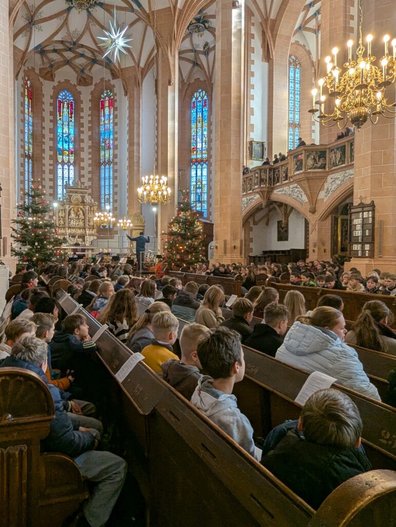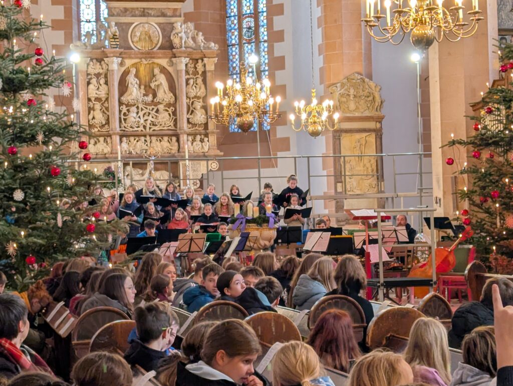 Im Rahmen des Gottesdienstes (Fotogalerie unten), der von Pfarrer Knittel und Schülerinnen und Schülern sowie Lehrkräften der EGE ausgestaltet wurde, wurde am 19.12.25  traditionell auch wieder ein Teil der Gelder, die im Juni 2025 im Rahmen des Sozialen Tages erarbeitet wurden, offiziell an die ausgewählten Spendenprojekte übergeben.